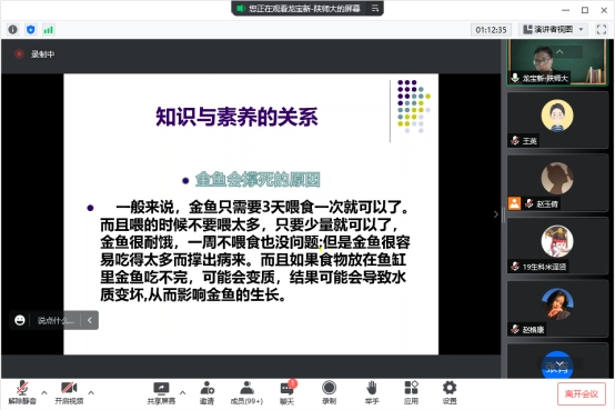 龙教授结合自己在中学一线的教学经验和工作经历,深入浅出地解读了为什么要进行核心素养教育、什么是学生发展核心素养、核心素养如何在课堂上生成、中学生物核心素养是什么、怎么样开展面向核心素养的课堂教学等内容。讲座过程中,他将课程思政内容与讲座主题浑然一体,参会教师和师范生被龙教授的认知深度和广度所感染。随后,大家与龙教授进行了热烈的交流互动,他耐心地解答了大家关心和疑惑的问题,与会教师和学生受到了很大的启发,学习了新的教学理念,拓宽了教学思路。