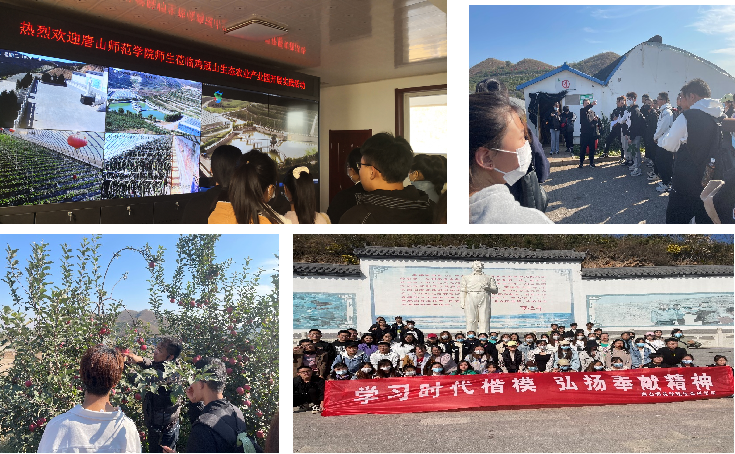 到达鸡冠山生态农业产业园后,同学们首先集中观看了宣传片,为荒山荒坡蜕变成金山银山所折服,曾经的荒山秃岭经过5年多的建设变成了“坡上栽树、林下养殖、地上种菜”的立体式生态园;随后,在专家和老师们指导下,同学们分组参观学习了温室大棚内沃柑、无花果、火龙果、芒果等南果北种的栽培与管理和草莓、桃、黄瓜、生菜等常见北方水果蔬菜的修剪、水肥管理关键技术;在露天苹果园内,同学们了解到保证苹果甜度、色泽的田间管理技术、提高坐果率的修剪技术,减少苹果病虫害的常规管理措施等;最后来到李保国老师塑像前。鸡冠山生态农业产业园是李保国教授生前最后一个山区扶贫开发基地,他亲自设计了荒山治理和林果栽植方案,制定产业园详细规划,倡导“生态休闲采摘”产业定位等......同学们认真聆听李保国的感人事迹,感悟了李保国扎根农村的“太行活愚公”精神。
