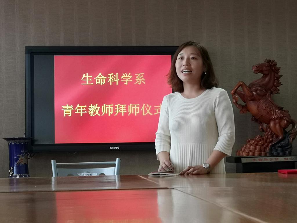 拜师仪式由系主任蔡玉梅主持,党总支书记陈润军出席仪式并宣读了拜师结对的名单。接着,蔡主任对指导教师和新教师各自的职责提出了具体要求,陈书记为指导教师颁发了聘书,青年教师面向指导教师行拜师鞠躬礼。最后,新教师代表吕娜发言,表达了作为青年教师定会虚心请教、勤学多问、及时总结、继承传统、追求进步;指导教师代表马艳芝教授发言,承诺定会在各方面率先垂范,为青年教师带好头,为青年教师的成长和发展做出自己应有的贡献,同时要求青年教师要不断学习,树立终身学习的理念,做一个会学习、爱学习、善学习的人;要不断创新,做到拼搏奉献、务实创新;要幸福快乐,做到眼中有光、心中有爱!