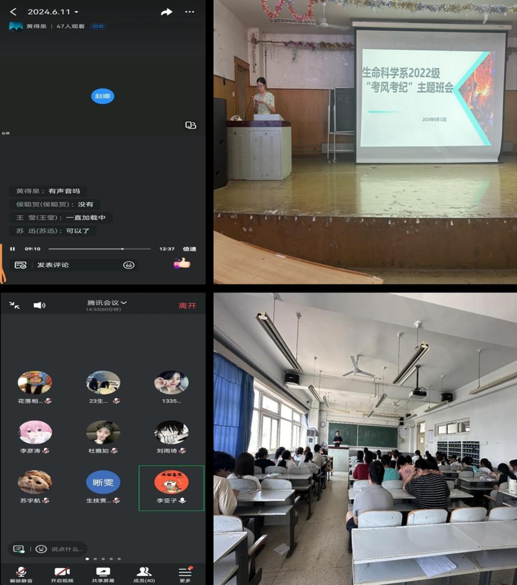 本次班会由班主任老师主持,班主任老师向同学们强调了考风考纪的重要性,详细解读了四六级考试的相关规定和纪律要求,从考试时间、安检程序、考场纪律、涉违法违规等方面进行了全面阐述,提醒同学们提前准备诚信考试承诺书、身份证、准考证等,以及告知同学临时找不到准考证的应急处理办法;特别强调禁止携带手机、电子手环等电子设备及与考试无关的用品进入考试封闭区域,教育同学们把这些东西放在宿舍;叮嘱同学们考试期间禁止交头接耳、禁止抄袭等行为,要认真审题、仔细答题。
