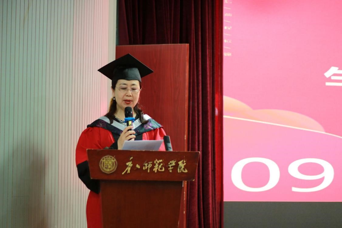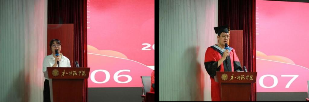 在校生代表2022级生物科学二班王璐对学长学姐们送去了祝福,也代表其他低年级学生进行表态,将继续传承和发扬生科人的优良传统,续写新篇章。教师代表许可老师向毕业生们送上了深切的祝福和殷切的期望,鼓励他们勇敢前行,不断追求自己的梦想。