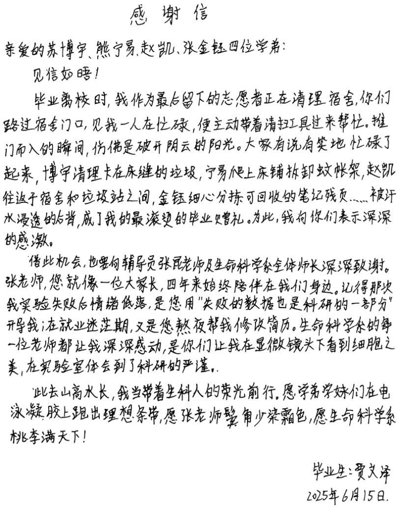以信为笺,铭记校园暖光——我系2025届毕业生以感谢信传递教育温度