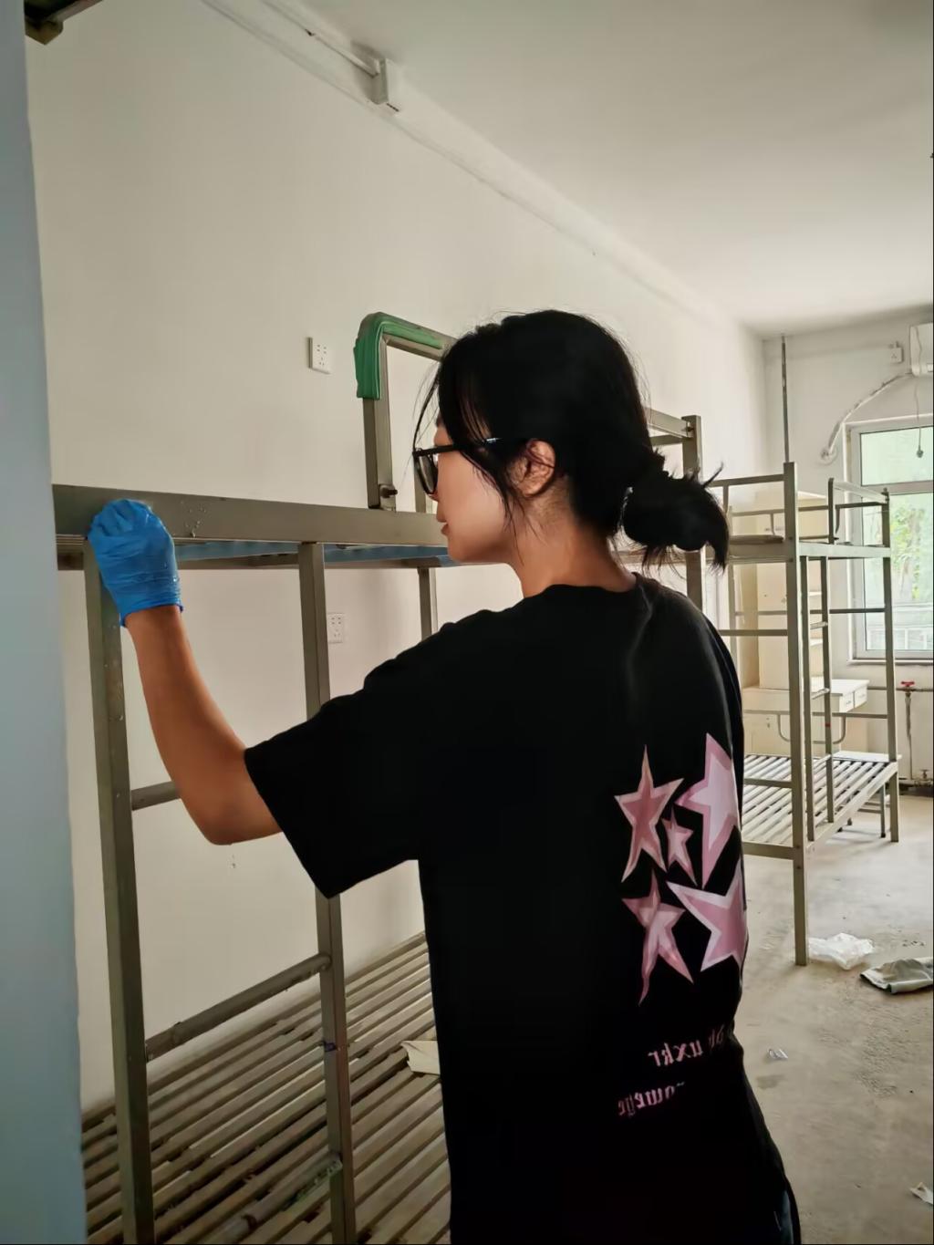 本次排查以“全覆盖、无死角、重实效”为原则,师生团队采取“逐间核验、逐项把关”的模式,对宿舍卫生情况、安全设施配备、床铺稳固性等关键环节进行细致检查,确保不留任何安全隐患。与此同时,师生们共同承担起宿舍环境优化工作,从所有宿舍窗帘的拆卸清洗、晾晒归位,到科学调整宿舍布局,将桌椅与床铺合理分区,规范行李架与储物柜的摆放位置,最大化利用空间资源。经过三天的协作,新生宿舍从卫生环境到功能布局均焕然一新,呈现出整洁有序、温馨舒适的面貌。
