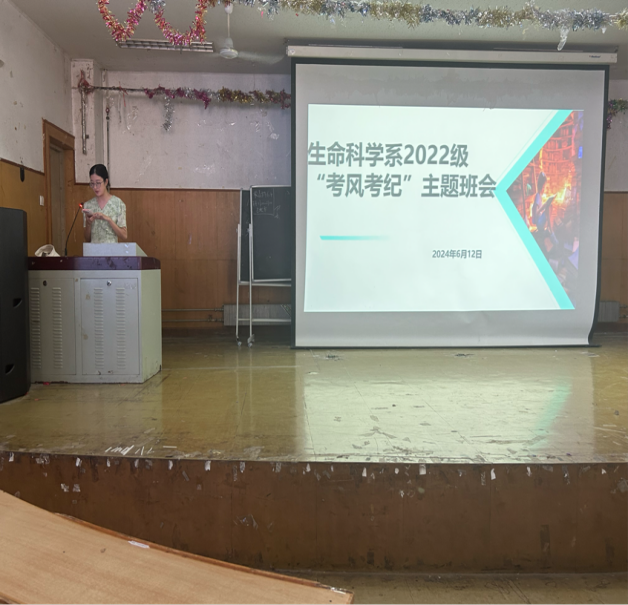 本次班会由班主任老师主持,班主任老师向同学们强调了考风考纪的重要性,详细解读了四六级考试的相关规定和纪律要求,从考试时间、安检程序、考场纪律、作弊处理等方面进行了全面阐述,提醒同学们提前准备诚信考试承诺书、身份证、准考证等,以及告知同学临时找不到准考证的应急处理办法;特别强调禁止携带手机、电子手环等电子设备及与考试无关的用品进入考试封闭区域,教育同学们把这些东西放在宿舍;叮嘱同学们考试期间禁止交头接耳、禁止抄袭等行为,要认真审题、仔细答题。