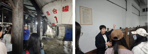 随后,师生们来到唐山迁安贯头山酒厂。在这里,企业负责人不仅向大家介绍了白酒生产工艺,还讲述了贯头山酒业悠久的历史。从传统的制曲、发酵,到蒸馏、陈酿,同学们感受到了白酒酿造中蕴含的传统文化与匠心精神。在参观过程中,大家被浓厚的酒文化氛围所吸引,对白酒产业的发展有了更深入的思考。
