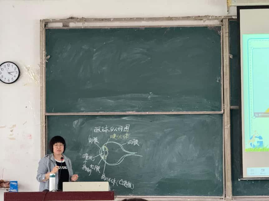 于海行老师凭借其深厚的教育经验和卓越的教学技巧,为在场师生呈现了一堂生动且高效的生物示范课。她不仅深入浅出地讲解了视觉的形成机制,还借助互动式教学和多媒体技术,将抽象的生物学知识转化为直观易懂的教学内容。整个课堂氛围活跃,学生们积极参与绘制眼球结构图,展现了极高的学习热情。