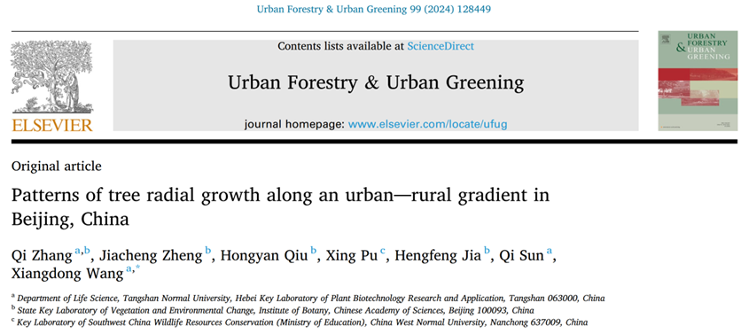 近日,我校唐山市药用植物综合利用团队在国际知名学术期刊《Urban Forestry & Urban Greening》(IF=6,JCR一区)发表题为《Patterns of tree radial growth along an urban-rural gradient in Beijing, China》的研究论文。yl6809永利集团青年教师张启博士为论文第一作者,王向东教授为通讯作者,我校为论文第一完成单位与通讯单位。